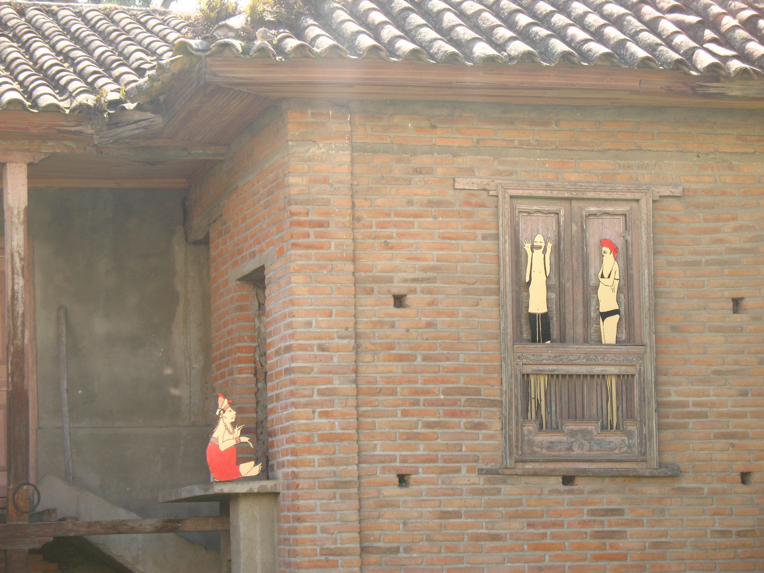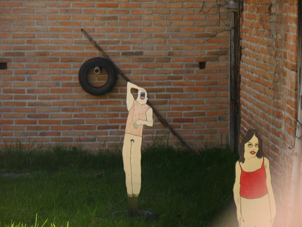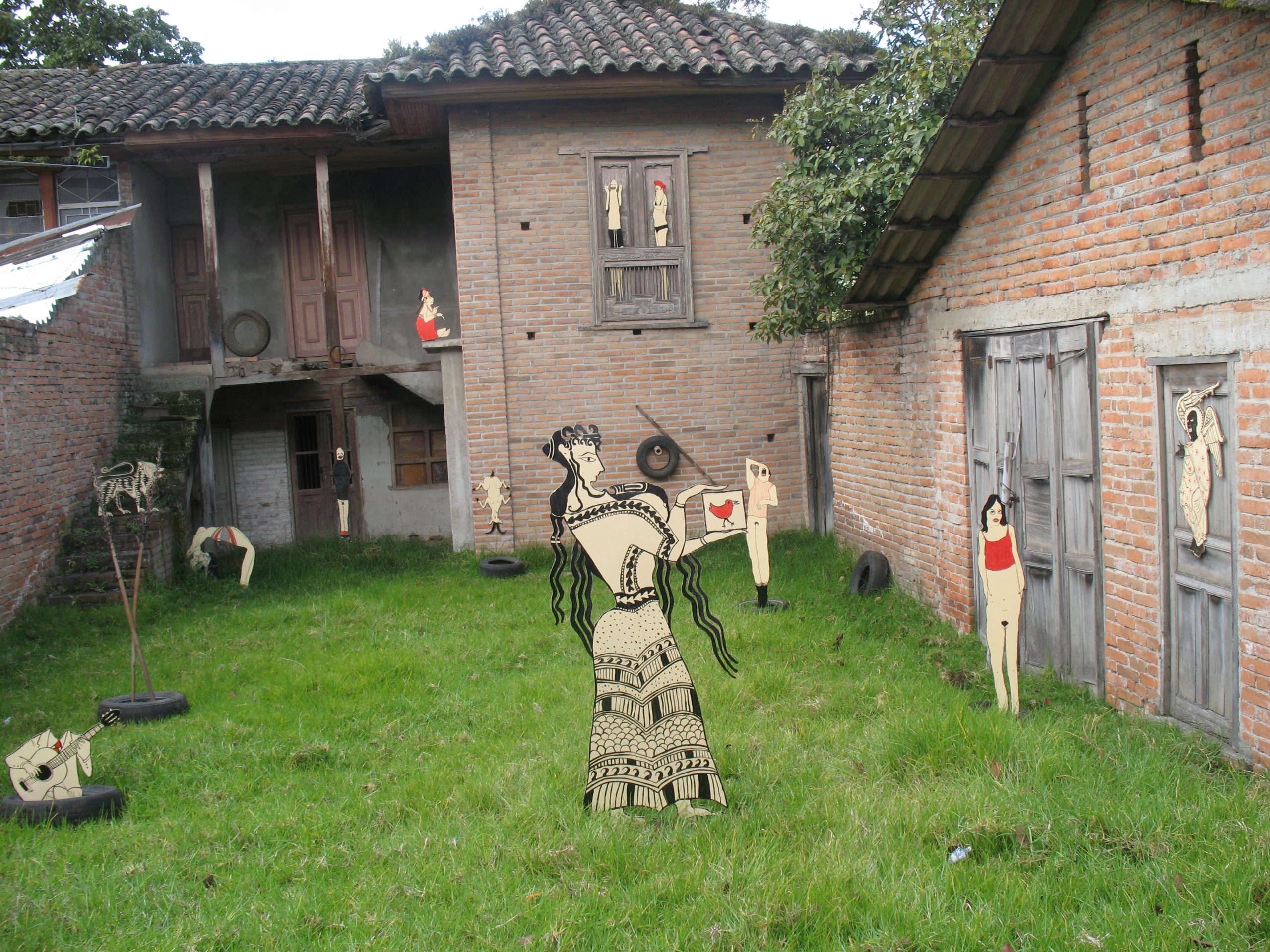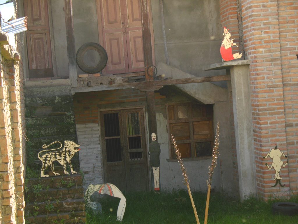 | M U E S T R A S la facultad de la risa abandonada 2008 instalación expositiva a partir de pinturas recortadas e interveción espacial en el jardin de una casa abandonada en la calle 16 con avenida panamericana de la ciudad de Pasto, Colombia CV |